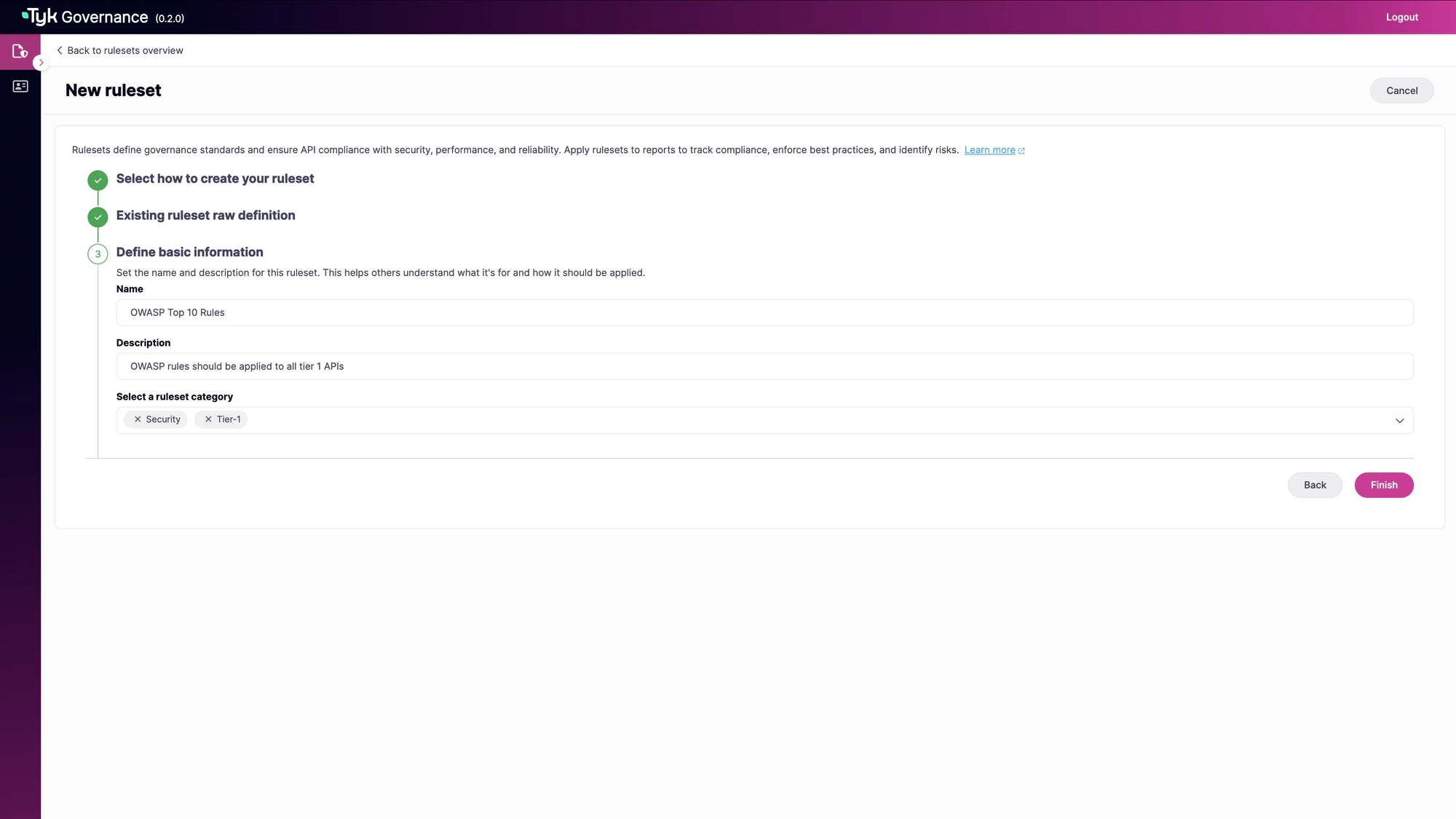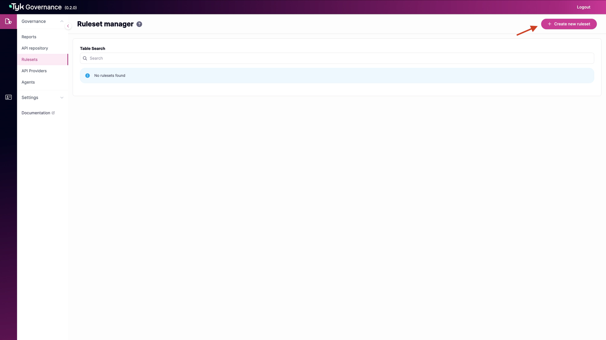 Navigate to the Rulesets section in your Tyk Governance dashboard.